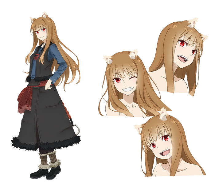 她自稱是掌管豐收的狼神——「賢狼」赫蘿。 由於村莊引進新技術不再需要她的守護,赫蘿感到落寞,希望能回到遙遠北方的故鄉「約伊茲」。於是,渴望同伴的赫蘿與精明的羅倫斯締結了契約:羅倫斯負責帶路,赫蘿則用她的智慧幫助羅倫斯經商。